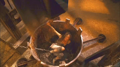 Showing how these things work so easily, one of the workers at the shipping yard hears her screams but takes the block of money; which is a sadly true indictment of society, these things have always gone on because of it (greed/power/corruption/etc; it seems to me the masses live in some kind of 'La La Land' where none of this exists or has ever existed). In reality people are trafficked in boxes/cargo containers every day, human trafficking/slavery is a multi-billion dollar industry (corporations, working with organized crime are heavily invested in this industry [whilst reaping the benefits in terms of using sex-slaves, using sex-slaves for political blackmail and such]), has only grown in recent years, and will continue to grow; the New World Order is built on slavery and is a sex-trafficker's paradise, being completely ignorant to the darkness in the world allows it to happen.